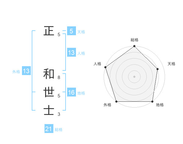 正 和世士さんの外格は13画の5点!