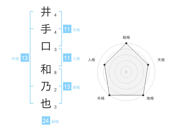 井手口 和乃也さんの外格は13画の5点!