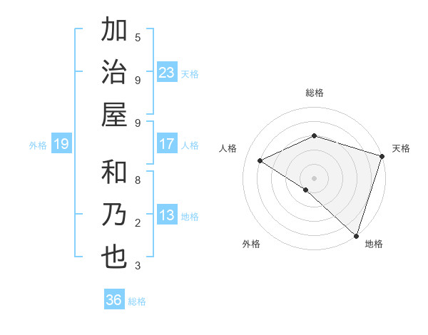 加治屋 和乃也さんを姓名の画数から五運を鑑定