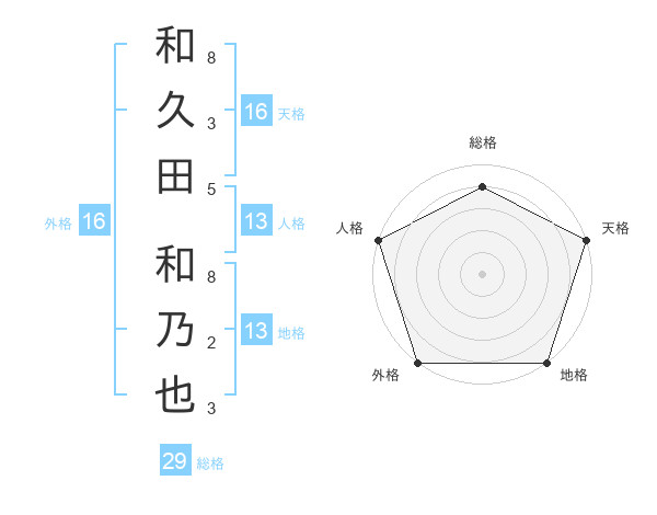 和久田 和乃也さんを姓名の画数から五運を鑑定