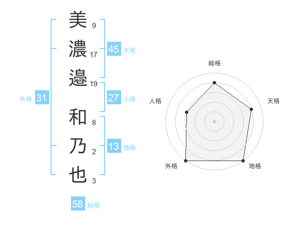 美濃邉 和乃也さんの総格は58画の4点!