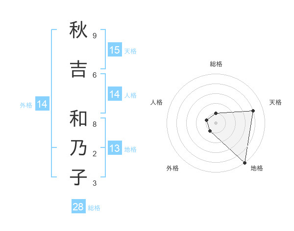 秋吉 和乃子さんを姓名の画数から五運を鑑定