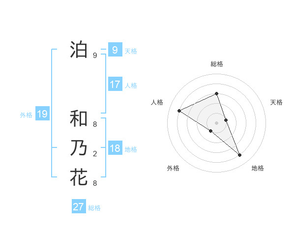 泊 和乃花さんを姓名の画数から五運を鑑定