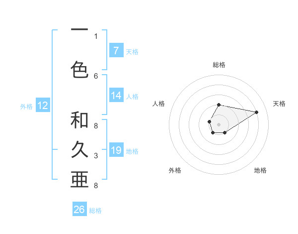 一色 和久亜さんの総格は26画の2点!