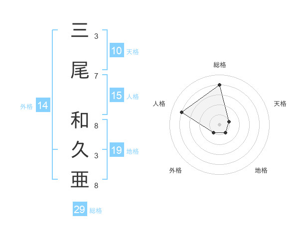 三尾 和久亜さんを姓名の画数から五運を鑑定