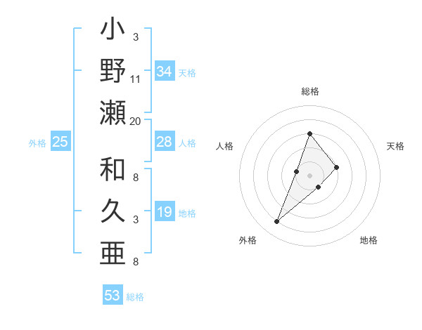 小野瀬 和久亜さんを姓名の画数から五運を鑑定