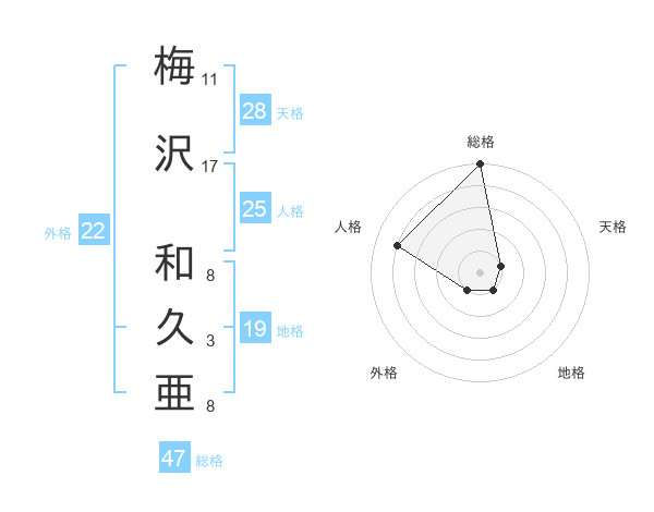 梅沢 和久亜さんを姓名の画数から五運を鑑定