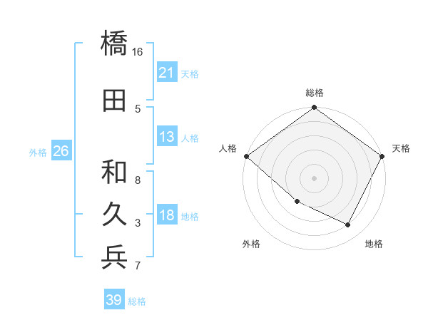 橋田 和久兵さんの天格は21画の5点!