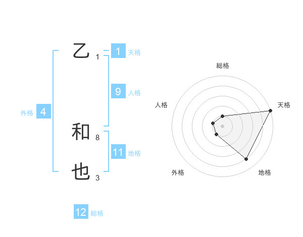 乙 和也さんの外格は4画の1点!