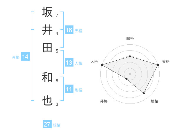 坂井田 和也さんを姓名の画数から五運を鑑定