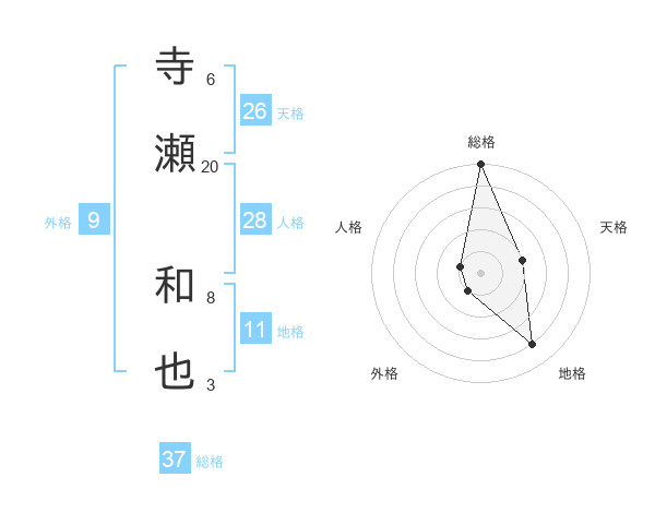 寺瀬 和也さんの総格は37画の5点!