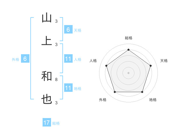 山上 和也さんの総格は17画の4点!