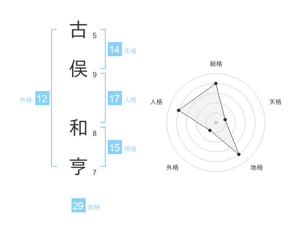 古俣 和亨さんの総格は29画の4点
