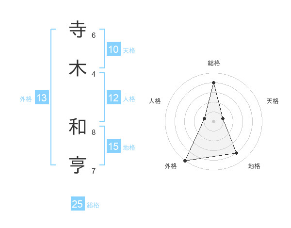 寺木 和亨さんの総格は25画の4点!