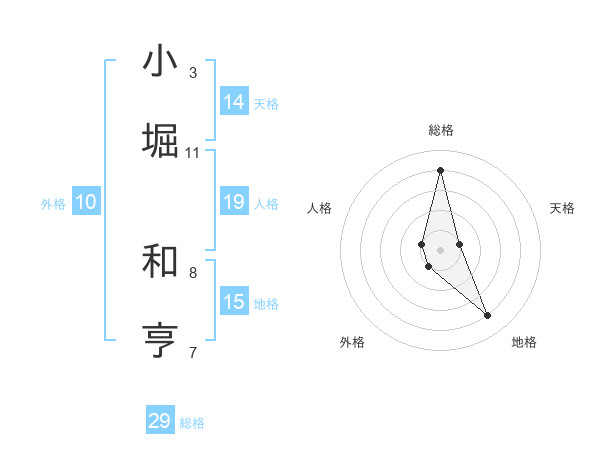 小堀 和亨さんを姓名の画数から五運を鑑定