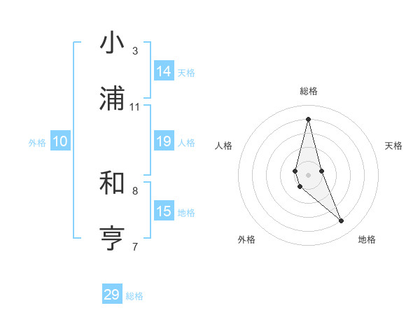小浦 和亨さんの総格は29画の4点!