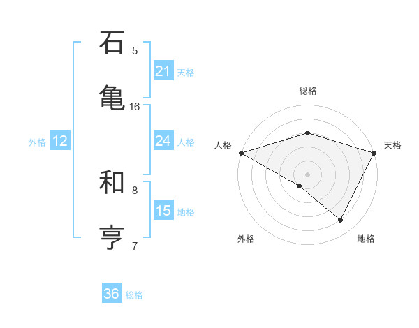 石亀 和亨さんの天格は21画の5点!