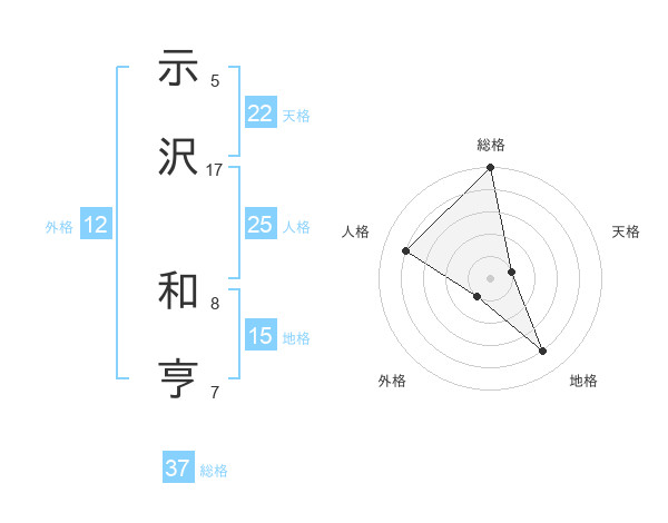 示沢 和亨さんの総格は37画の5点!