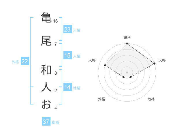 亀尾 和人おさんの天格は23画の5点!