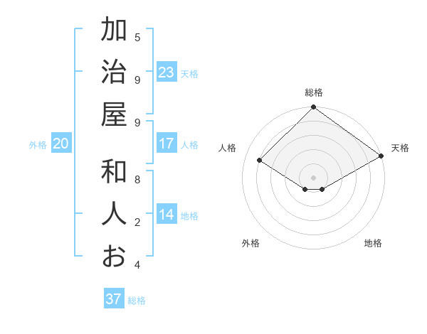 加治屋 和人おさんを姓名の画数から五運を鑑定