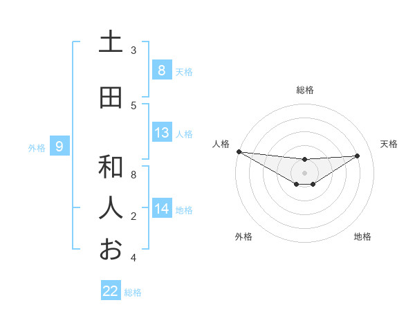 土田 和人おさんの総格は22画の1点