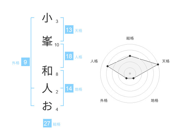 小峯 和人おさんの天格は13画の5点!