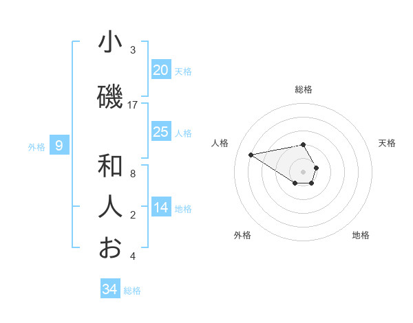 小磯 和人おさんの天格は20画の1点!