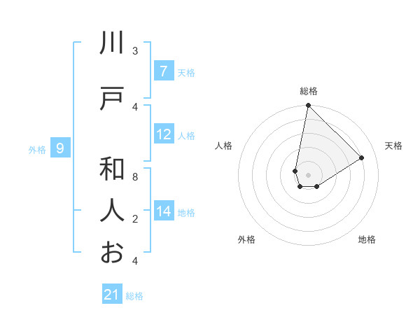 川戸 和人おさんを姓名の画数から五運を鑑定