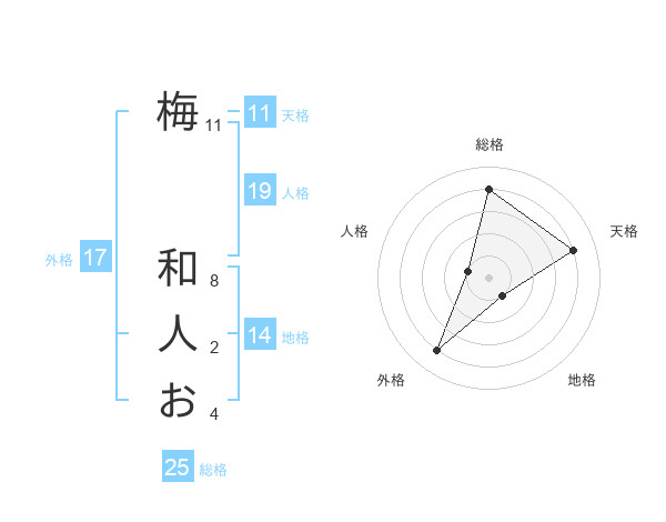 梅 和人おさんの総格は25画の4点!