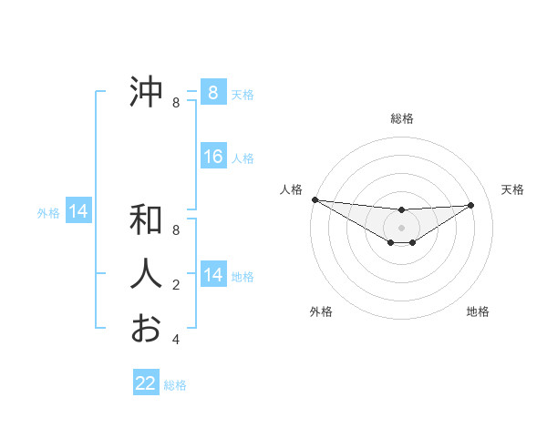 沖 和人おさんの地格は14画の1点!