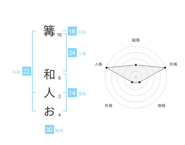 篝 和人おさんの総格は30画の2点!