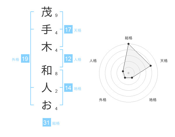 茂手木 和人おさんを姓名の画数から五運を鑑定