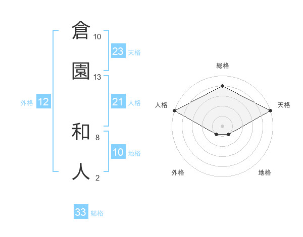 倉園 和人さんの天格は23画の5点!