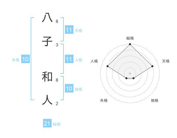 八子 和人さんの総格は21画の5点!