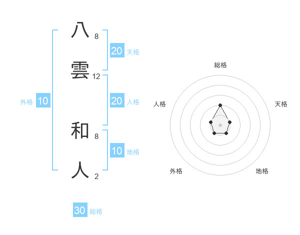八雲 和人さんの天格は20画の1点!