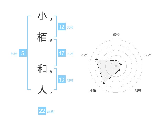 小栢 和人さんの総格は22画の1点!