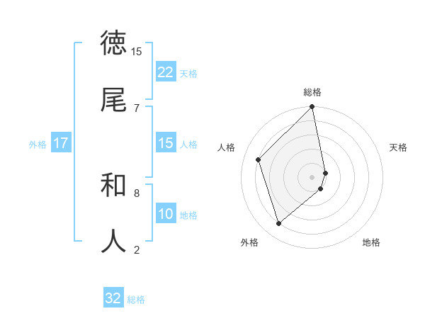 徳尾 和人さんの総格は32画の5点!