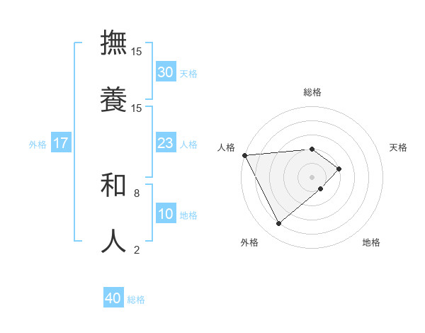 撫養 和人さんの総格は40画の2点!