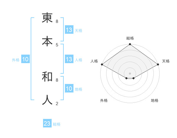 東本 和人さんの総格は23画の5点!