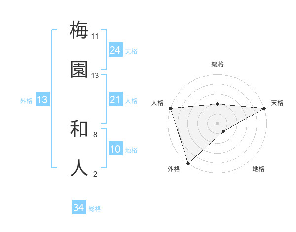 梅園 和人さんの天格は24画の5点!