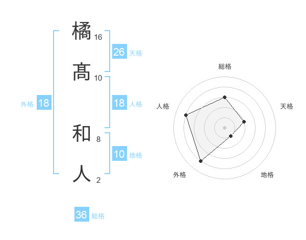 橘髙 和人さんの天格は26画の2点!