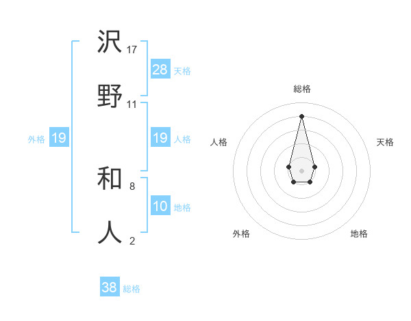沢野 和人さんの総格は38画の4点!
