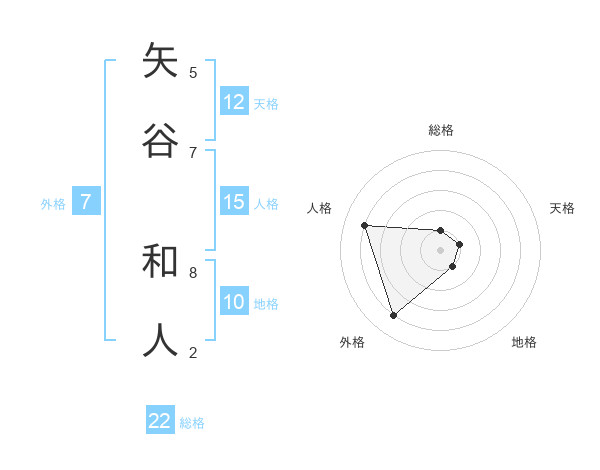 矢谷 和人さんの総格は22画の1点!