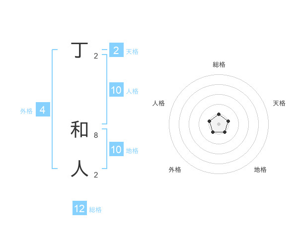 丁 和人さんの総格は12画の1点!