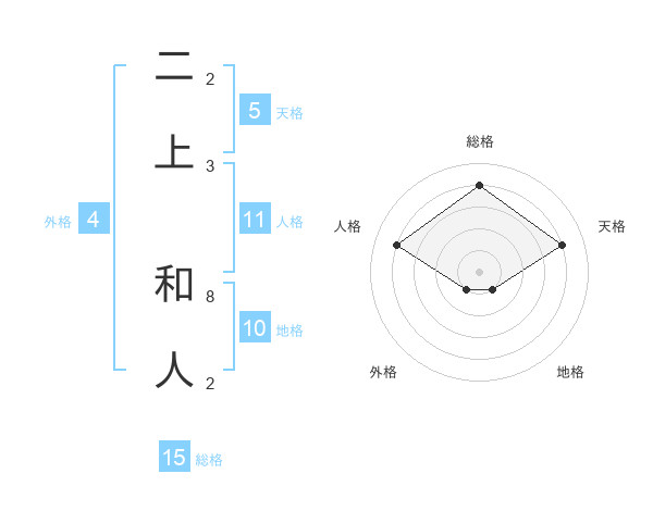 二上 和人さんの天格は5画の4点!