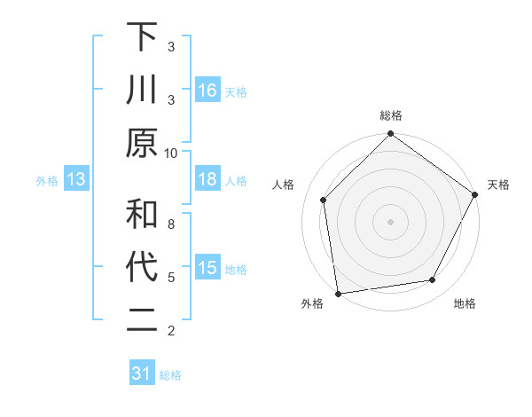 下川原 和代二さんを姓名の画数から五運を鑑定