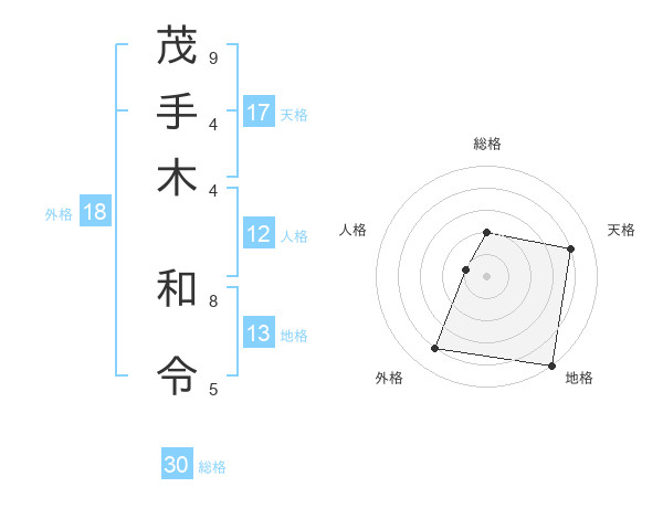 茂手木 和令さんの天格は17画の4点!