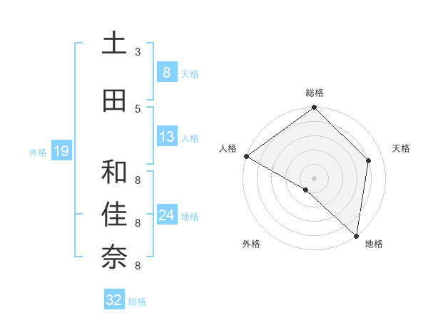 土田 和佳奈さんを姓名の画数から五運を鑑定