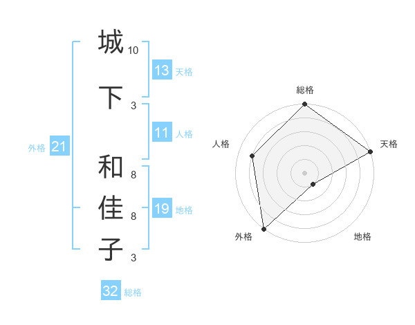 城下 和佳子さんを姓名の画数から五運を鑑定