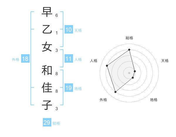 早乙女 和佳子さんの総格は29画の4点!